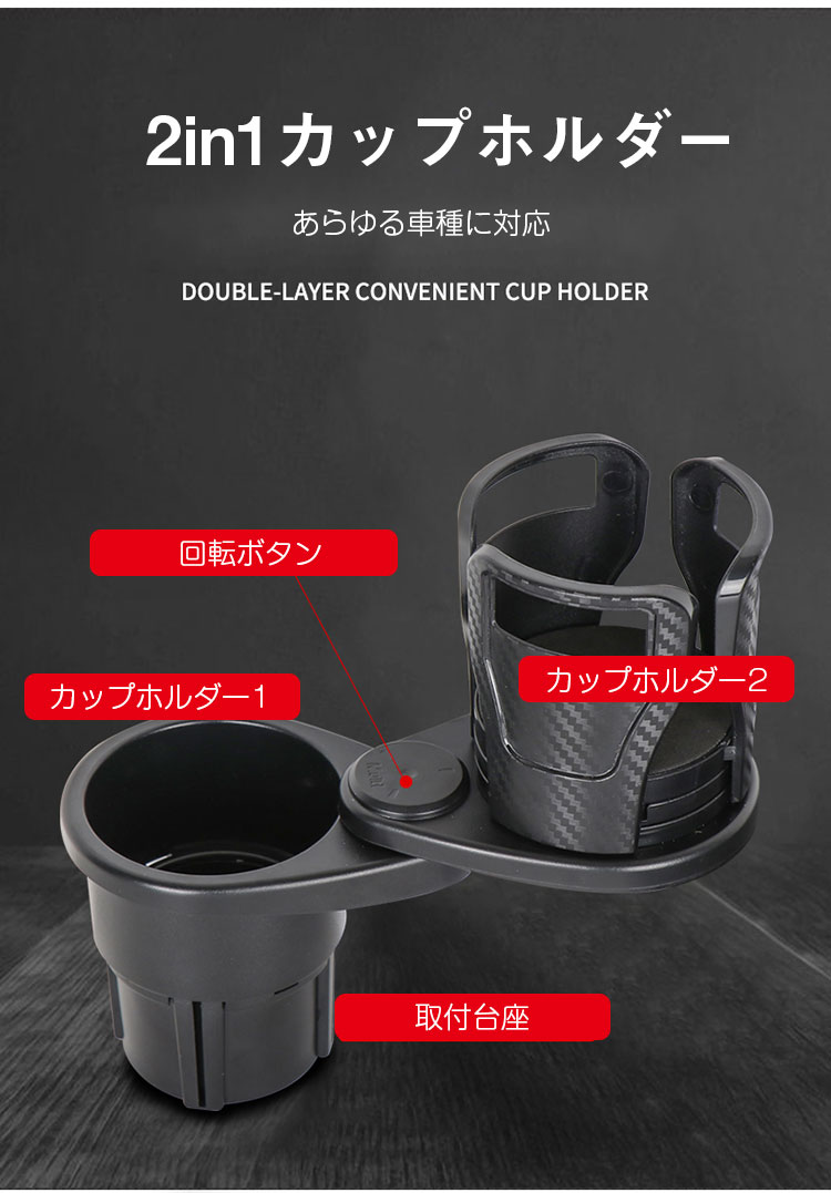 【カップホルダー】1つのホルダーに2本収納可能!純正ドリンクホルダーに差し込むだけの簡単取付。